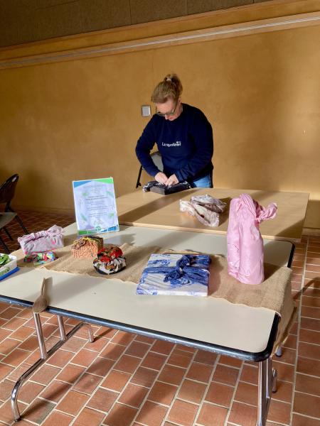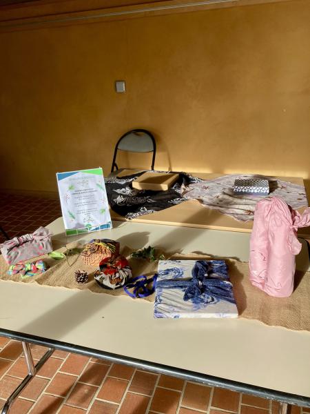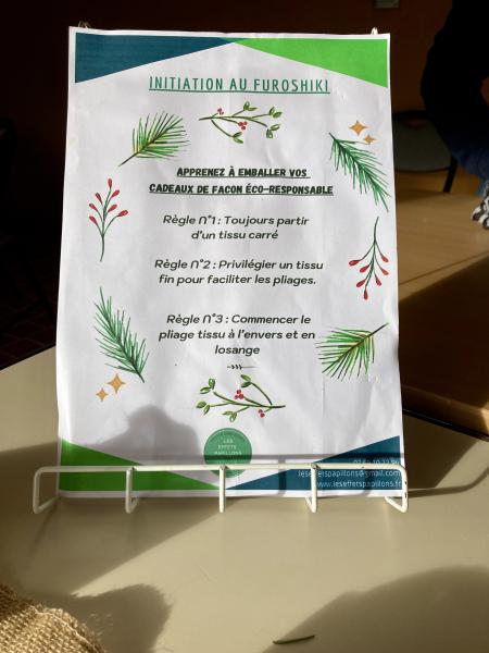 Le 10 décembre à la médiathèque nous avons eu la chance d'accueillir Hélène "Les effets papillons", dans le cadre de cet atelier il vous a été proposé de faire différentes décorations de Noël, ainsi qu'une initiation au furoshiki, cet art ancestral japonnais qui permet d'emballer vos cadeaux de Noël avec du tissu.